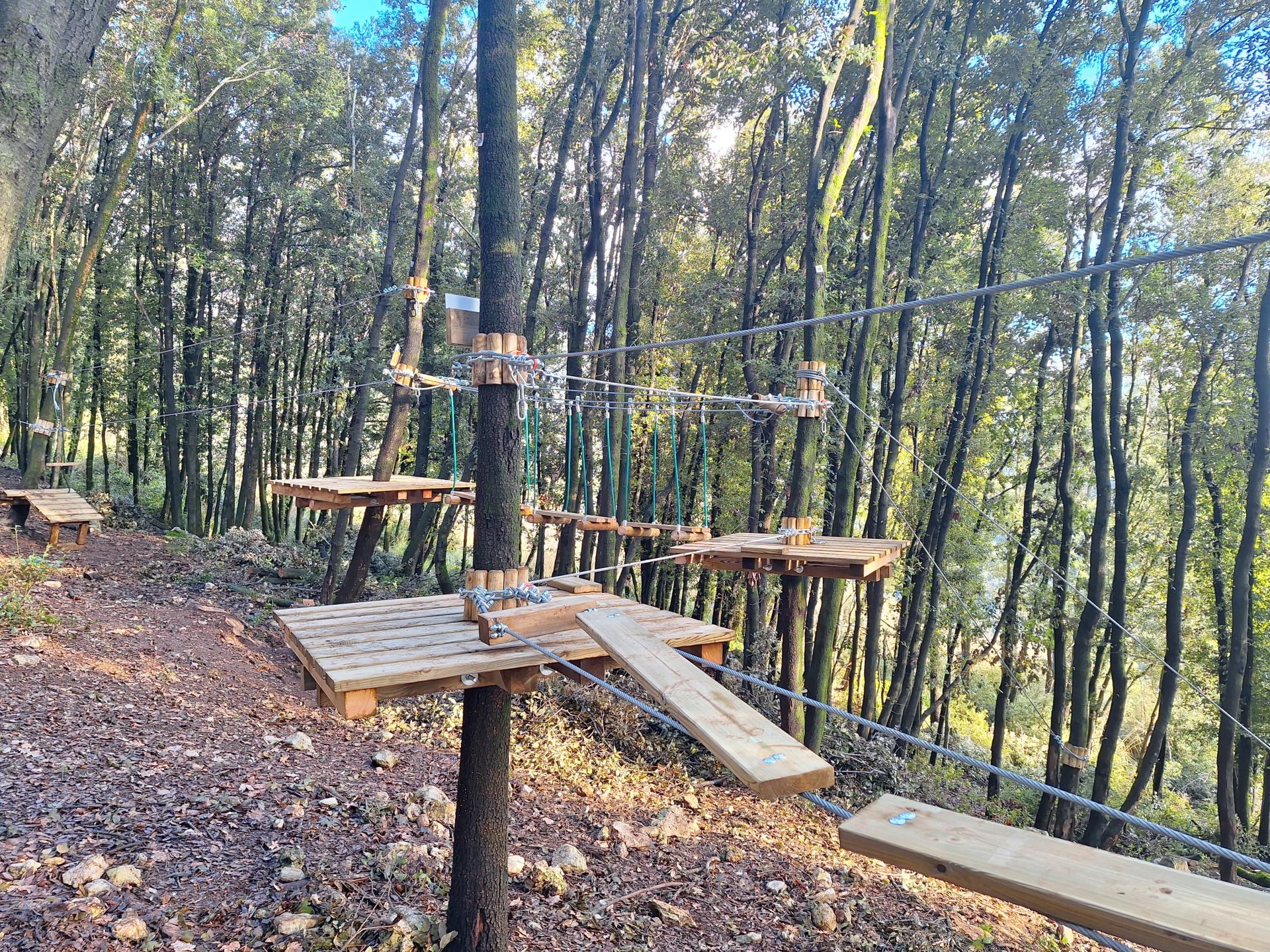 Abbiamo realizzato un parco avventura da 30 passaggi, montato una casetta in legno per ricovero imbragature e biglietteria, costruito anche un percorso per disabili in carrozzina.